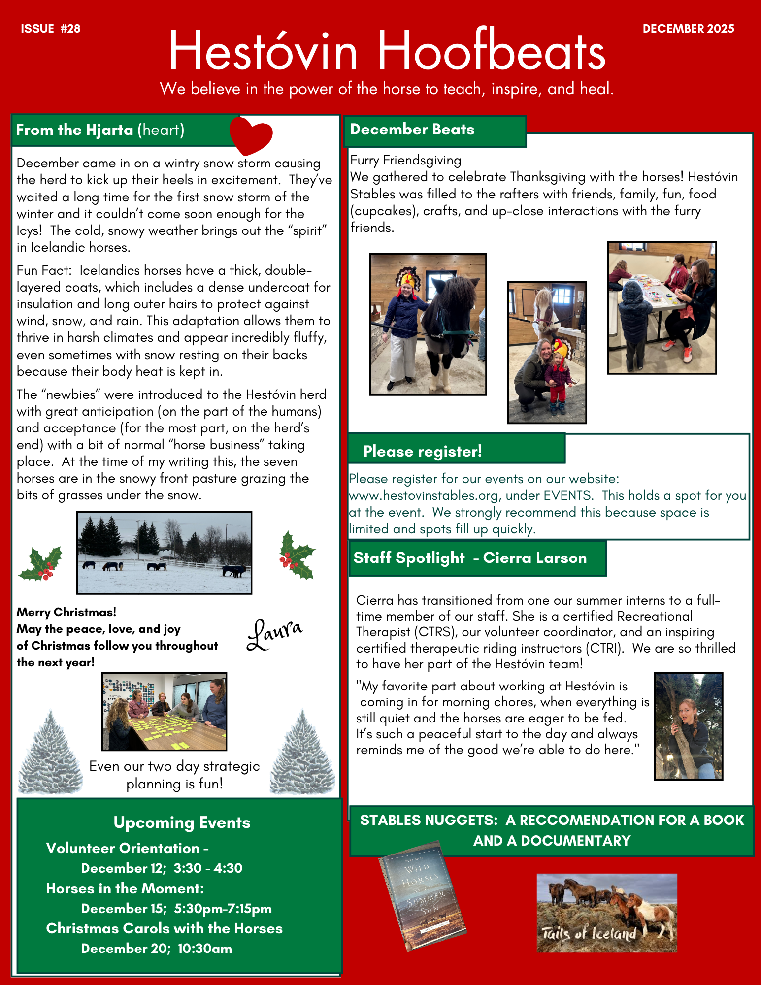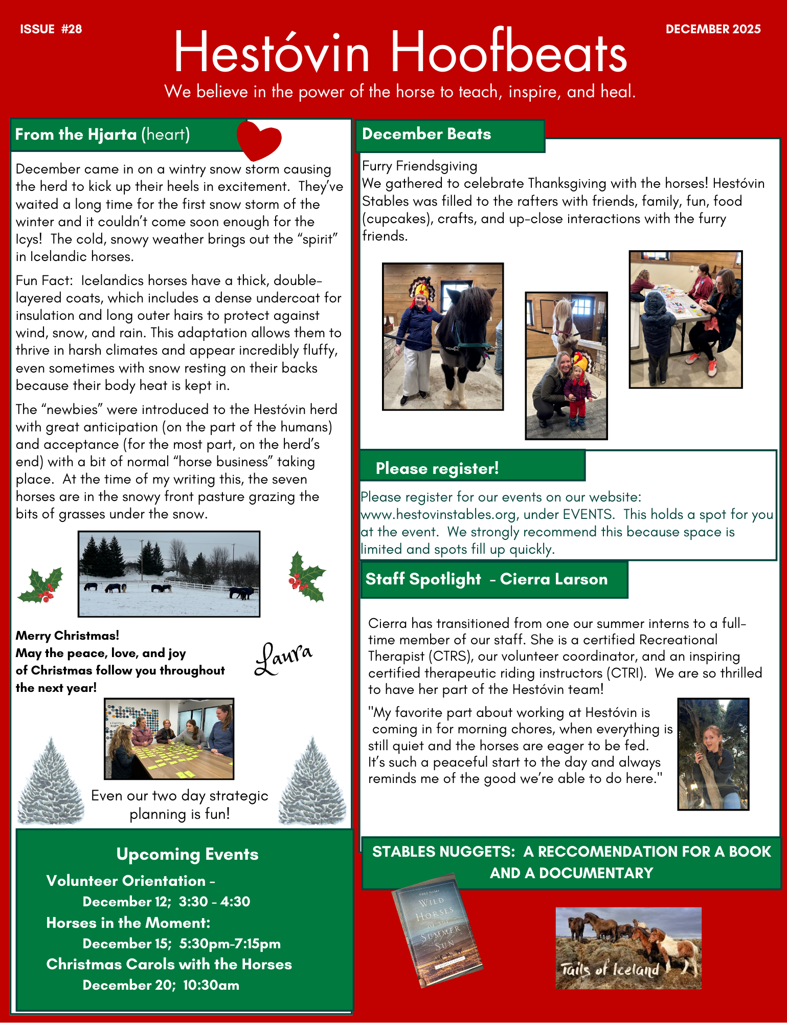 Fill out the form below to subscribe to our monthly newsletter, Hestóvin Hoofbeats. A digital version of our newsletter will be emailed to you by the end of each month with all the latest news and upcoming events going on here at the stables.